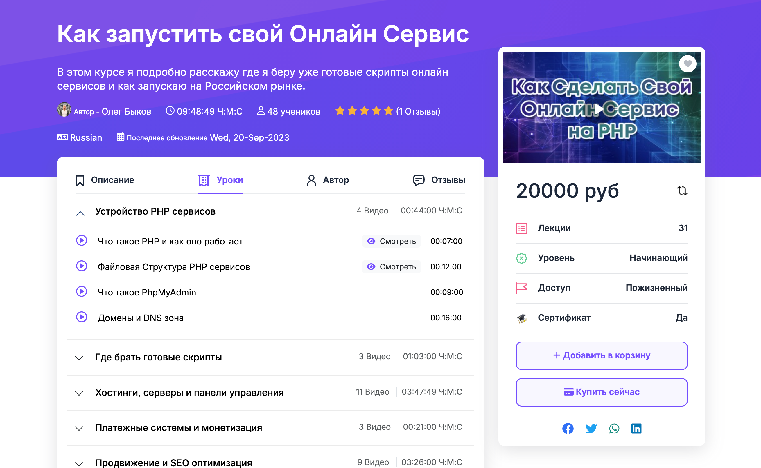 2. Поддержка экспертов: Возможность задать вопросы авторам курсов.