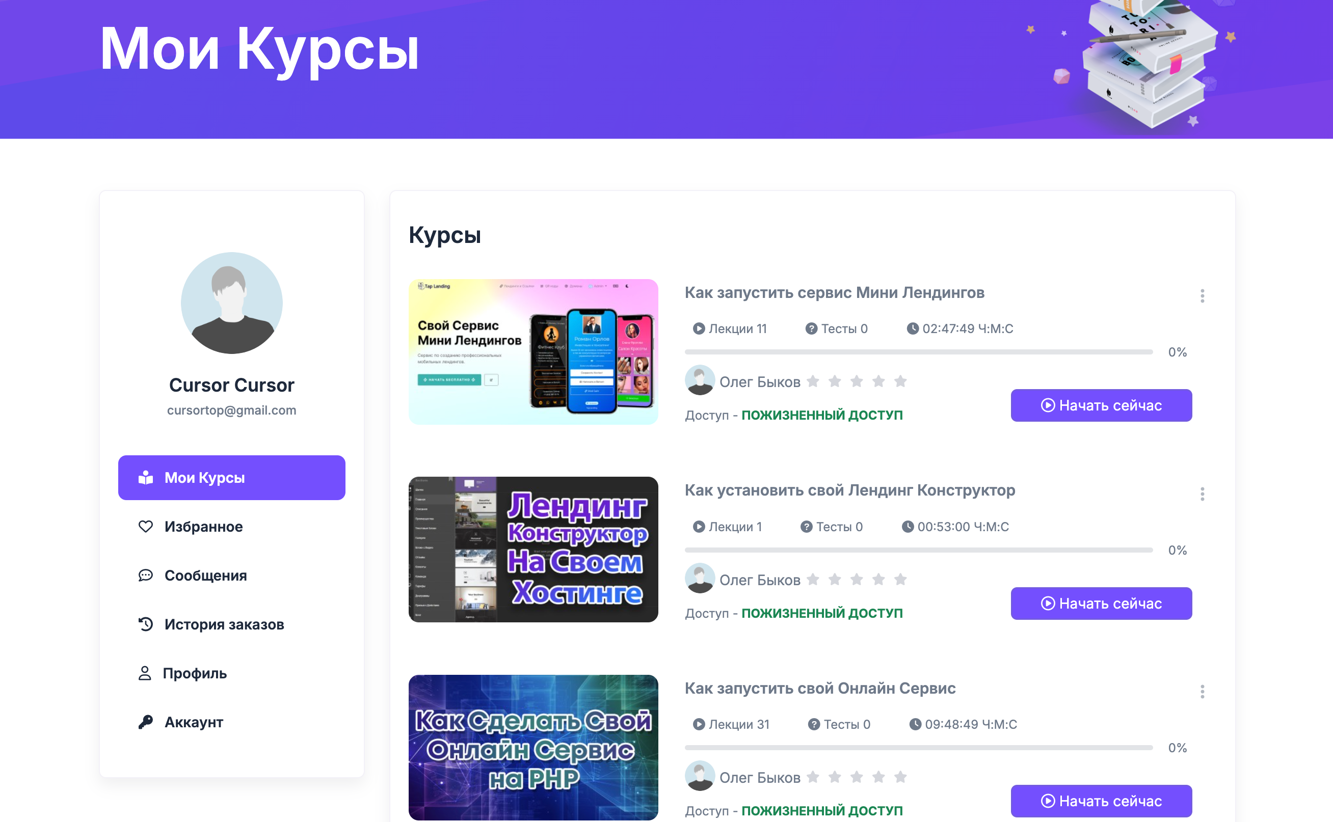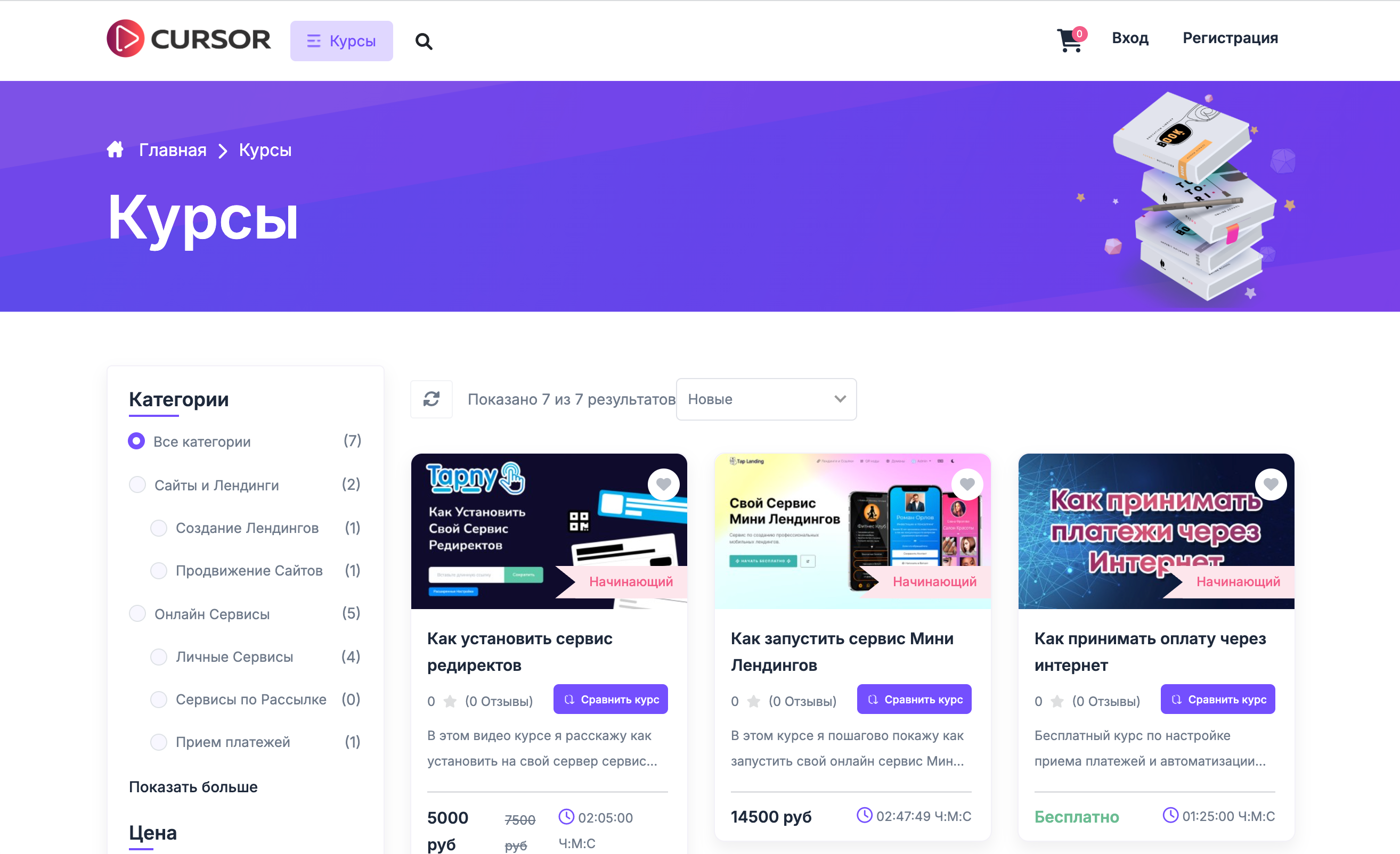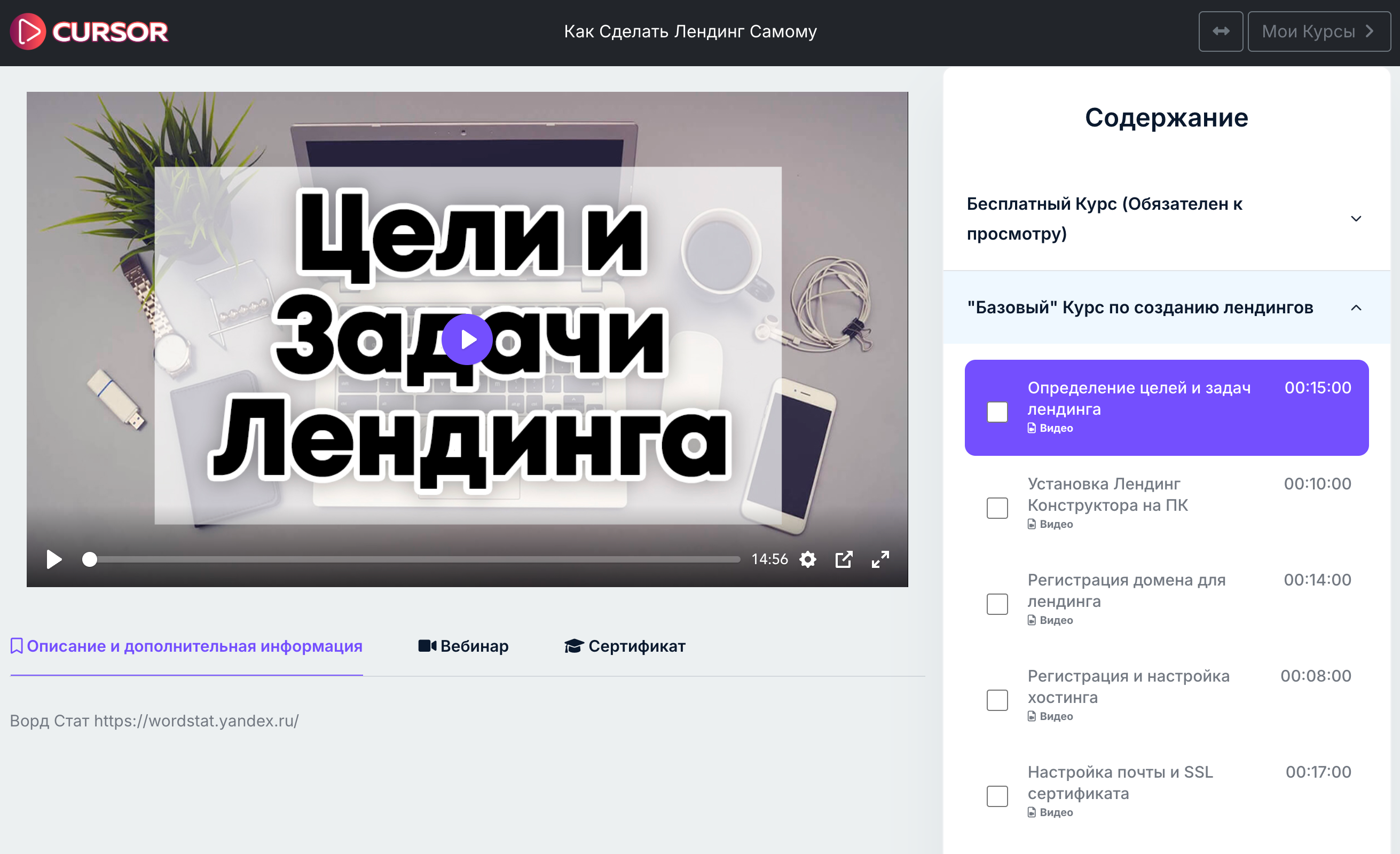 Cursor.pw – это онлайн-сервис, предоставляющий курсы по рекламе и онлайн-маркетингу. Платформа предлагает широкий спектр курсов, охватывающих такие темы, как создание и продвижение лендингов, настройка онлайн-сервисов и интеграция платежных систем. Видеоуроки предоставляют пошаговые инструкции, делая обучение доступным для пользователей с различным уровнем знаний.
